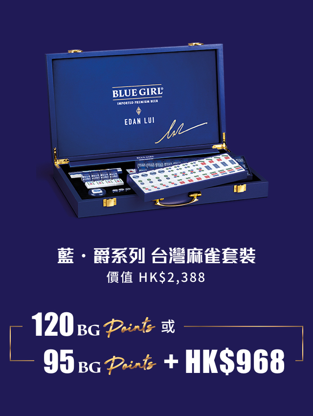 Club BG 會員可憑指定數量 BG Points 換領或加購多款精美禮品, 包括由 Blue Girl 聯乘 Edan Lui 的限量藍.爵系列禮品*^,每款均印有 Edan 的親筆簽名,極具收藏價值!